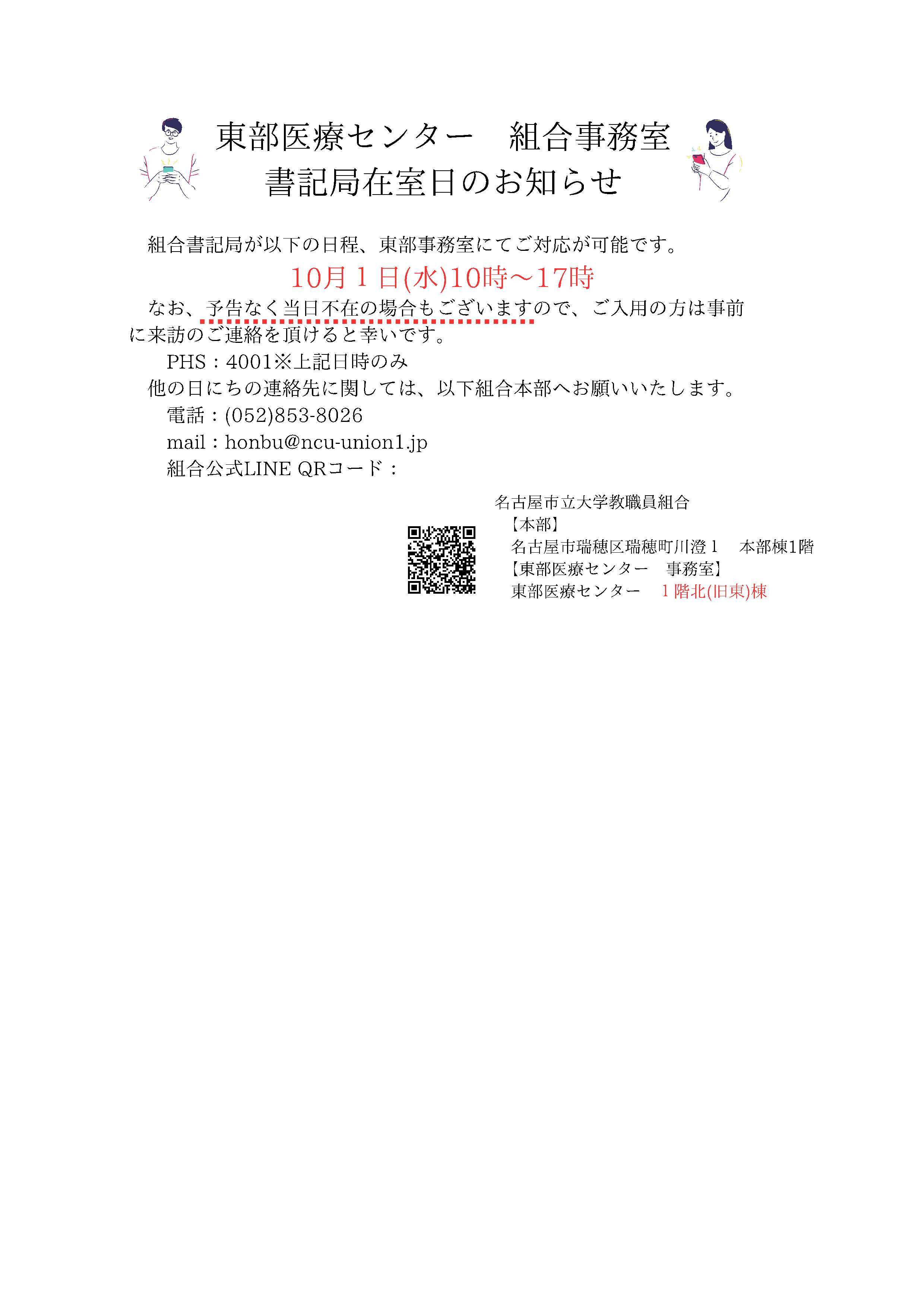 詳しくは組合書記局(内線・ 桜山8026/E-mail honbu@ncu-union1. jp)にお問い合わせください。