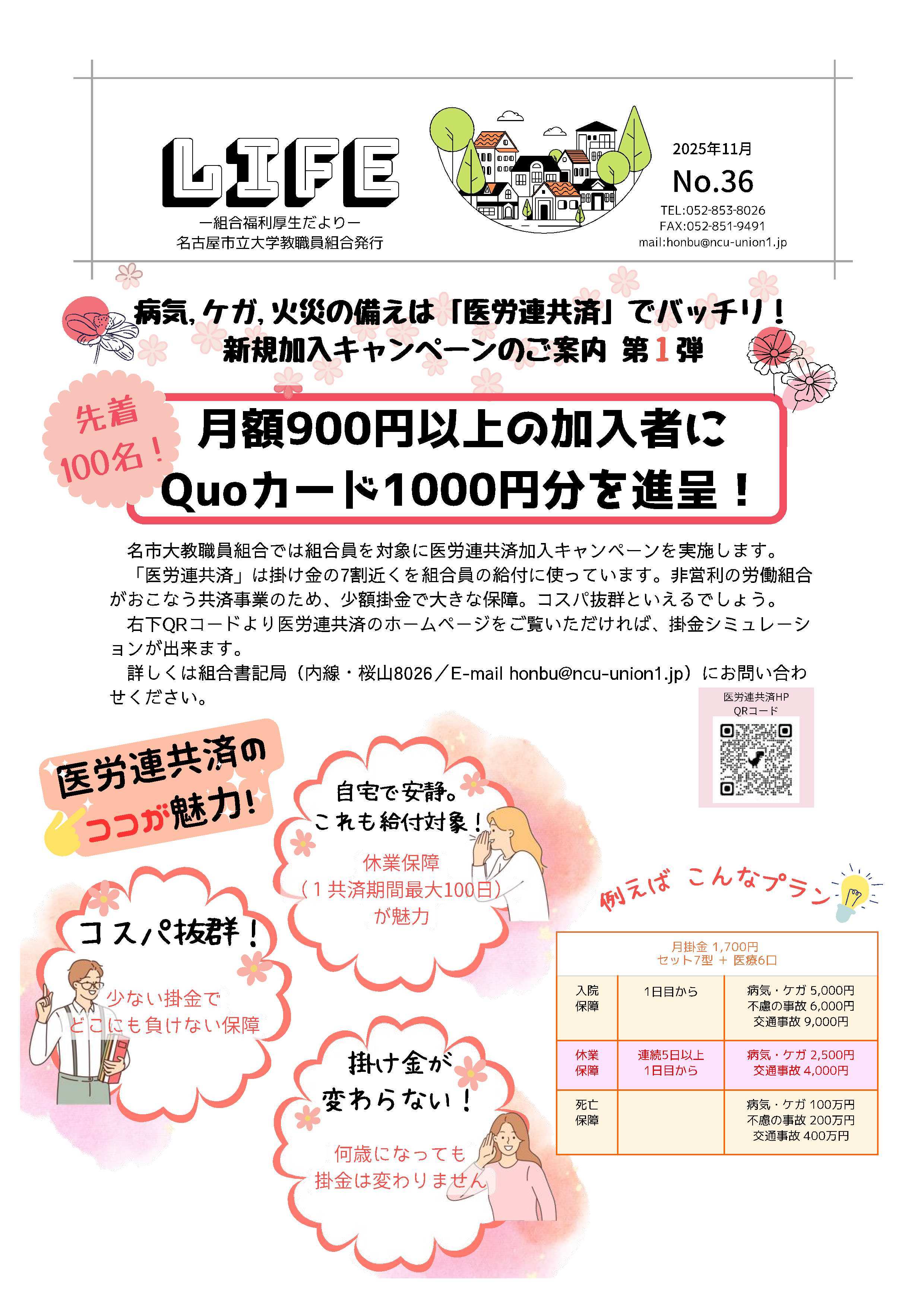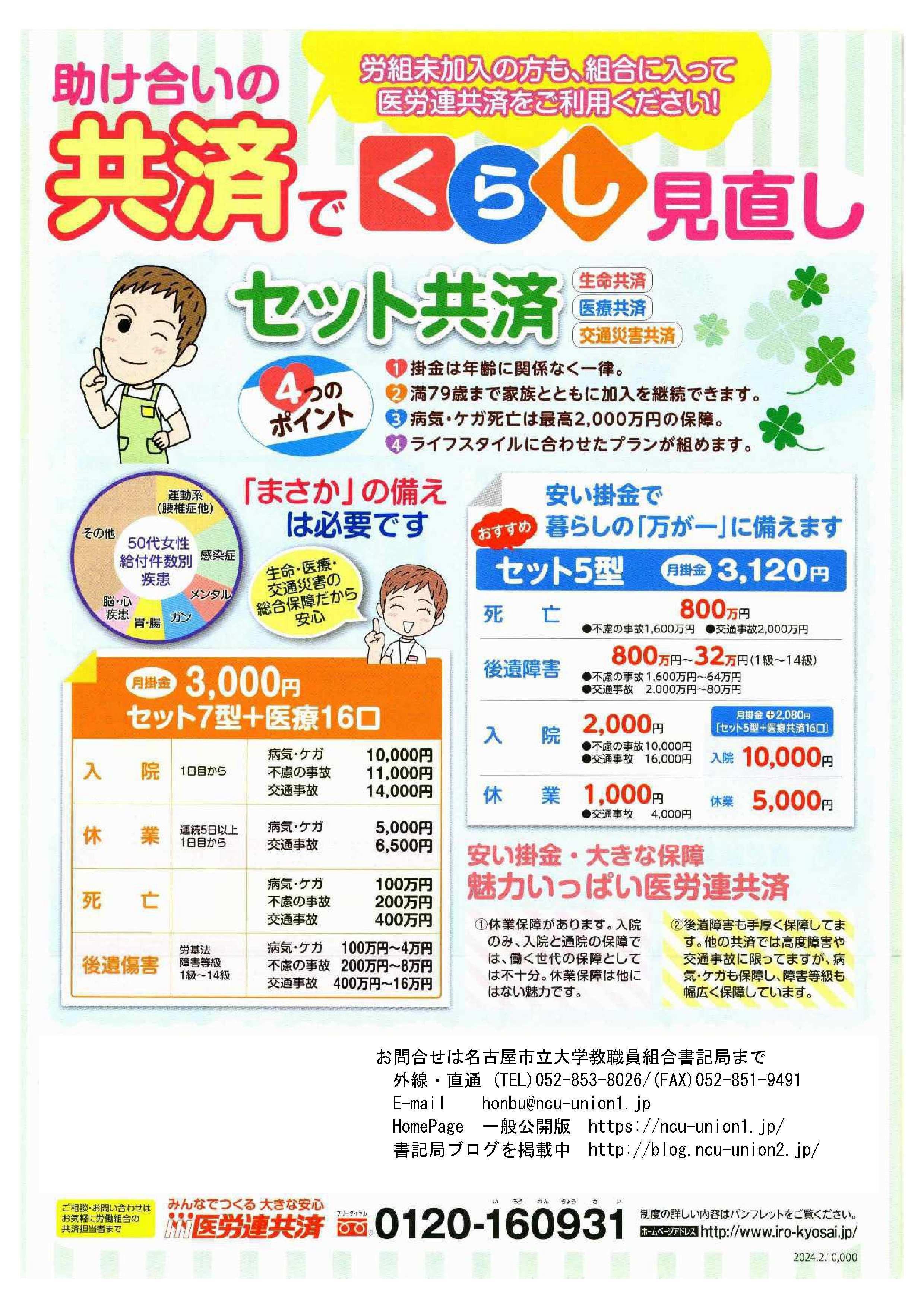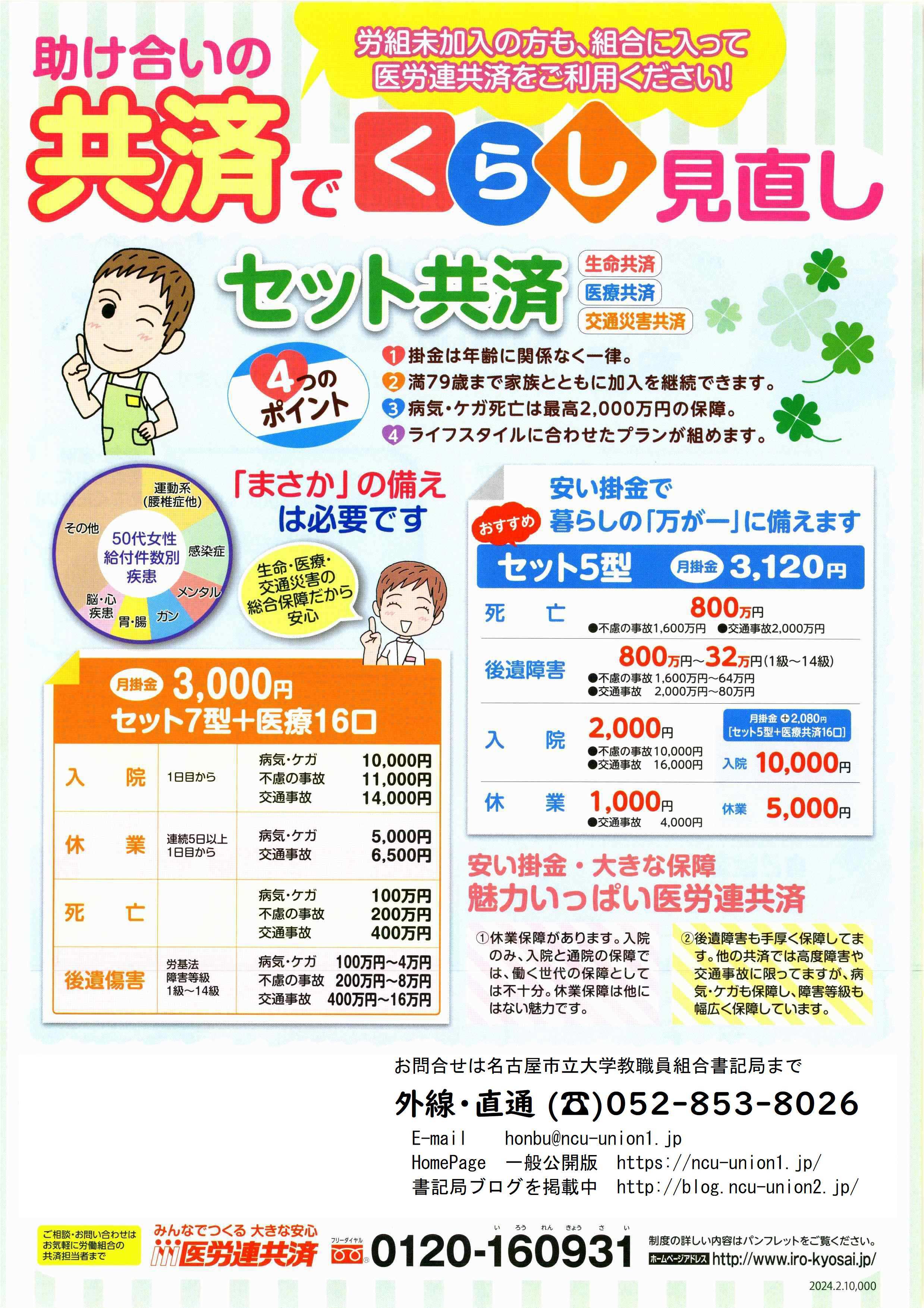 名市大教職員組合では組合員を対象に医労連共済加入キャンペーンを実施します。
